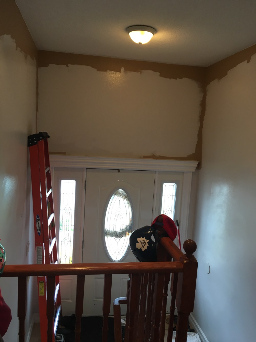 And now I just finished painting my hallway. I couldn’t stand the brown colour that the previous owners had through the whole house. It would make me angry looking at it. So I finally after one year of being in this house I got to paint it. I still have a few touch ups to do around a few door frames in the basement. But it doesn’t make me angry anymore and everyone loves it who’s walked in. It’s called “light pelican grey” by CIL. AND I LOVE IT. The only thing I want to do next is put some sort of decor on the ledge above the door and on the walls.